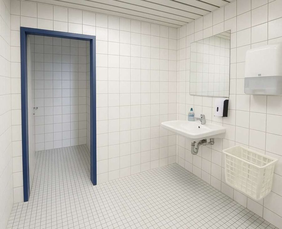 Zudem vorhanden sind vom Hausflur aus zugängliche Sanitäranlagen, die gemeinsam mit der gegenüber liegenden Büroeinheit genutzt werden.