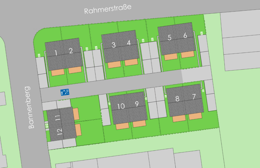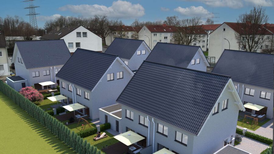 Vermietet wird eine von 12 Neubau-Doppelhaushalten im Wohnpark Bannenberg in Dortmund Rahm/Huckarde.