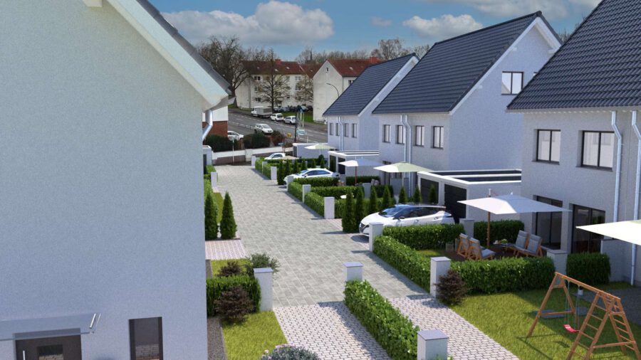 Neben einem eigenen Garten verfügen die Häuser über eine moderne Luft-Wärme-Pumpe. Zur Reduzierung der Betriebskosten ist das gesamte Haus im energetisch hochwertigen BEG 40 Standard errichtet worden.
