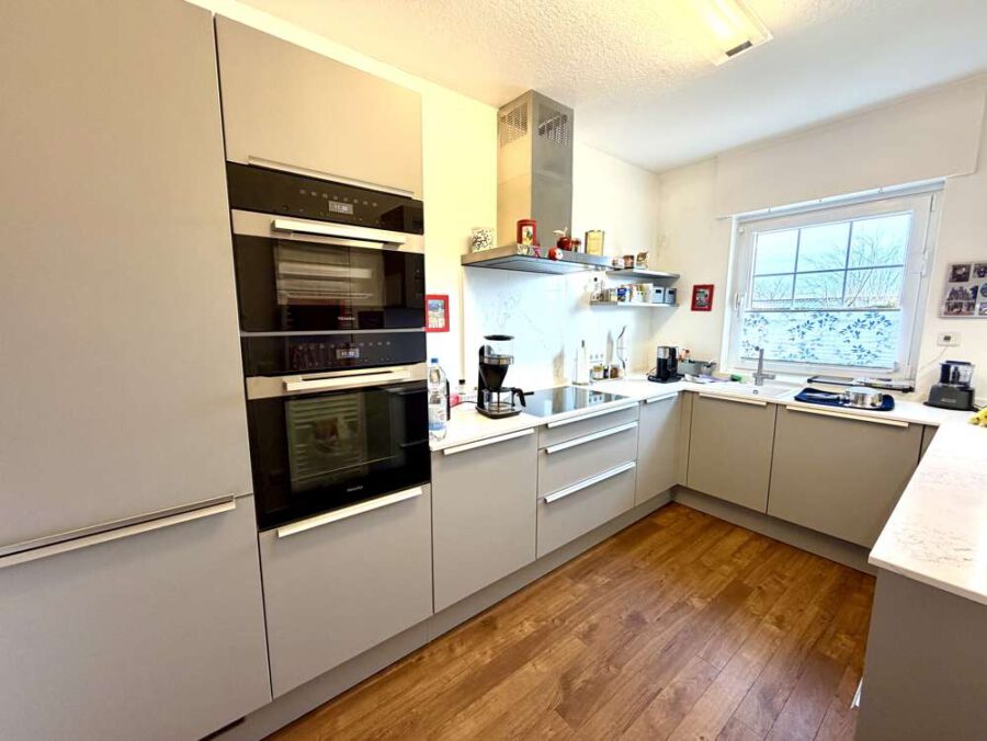 Die Immobilie bietet eine Wohnfläche von ca. 105 qm, die sich wie folgt aufteilen: Ausgehend von einem freundlichen Eingangsflur nebst praktischem Garderobenschrank gelangt man in den großzügigen Wohn-Essbereich, der mit einem gemütlichen Kamin ausgestattet ist. Vom Wohnbereich hat man Zugang auf die großzügige überdachte Terrasse und in den wunderschön gepflegten Garten. Zudem vorhanden ist eine Küche; diese ist mit einer hochwertigen Einbauküche (Miele-Geräte) ausgestattet, die bei Bedarf übernommen werden kann. Weiter vorhanden sind ein geräumiges Schlafzimmer sowie ein Kinder- oder Arbeitszimmer. Zusätzlich zu dem modernen Gäste WC beherbergt die Immobilie ein befenstertes Badezimmer mit Dusche.