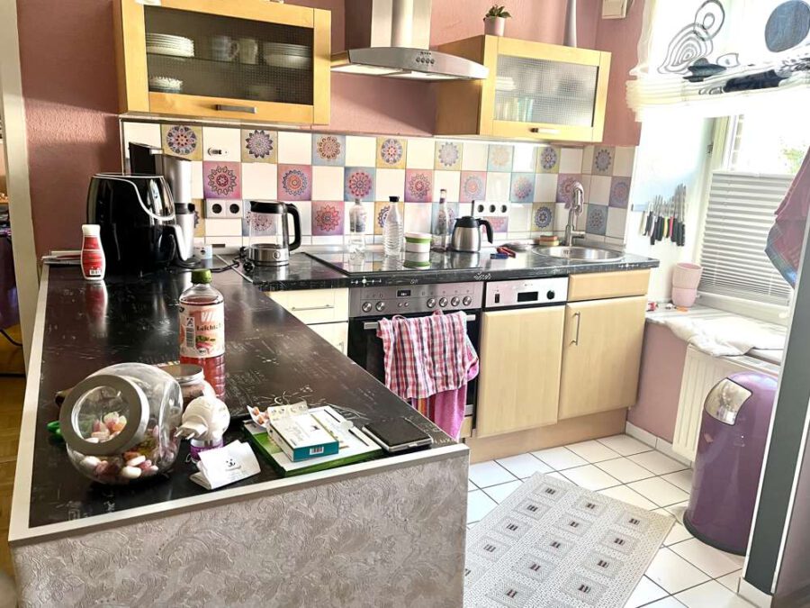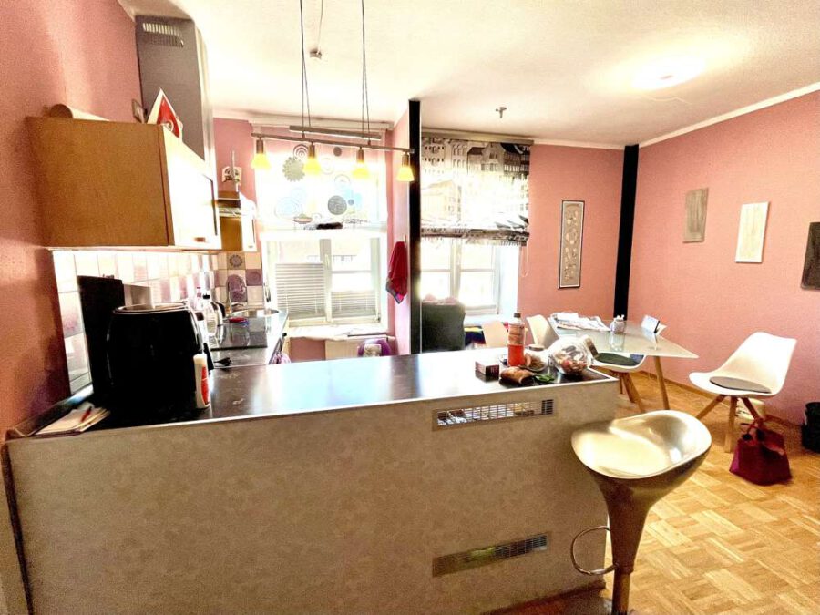 Die angebotene Wohnung (Baujahr 1992) verfügt über eine Wohnfläche von ca. 48 qm, die sich wie folgt aufteilen: Ausgehend von einer freundlichen Eingangsdiele nebst praktischem Einbauschrank erreicht man zunächst das helle Wohn-Esszimmer mit integrierter, offener Küche. Von hier aus hat man einen schönen Blick in den grünen Innenhof der Anlage und auf das historische Herrenhaus. Zudem gibt es ein geräumiges Schlafzimmer sowie ein innenliegendes, hell gefliestes Badezimmer mit Badewanne.