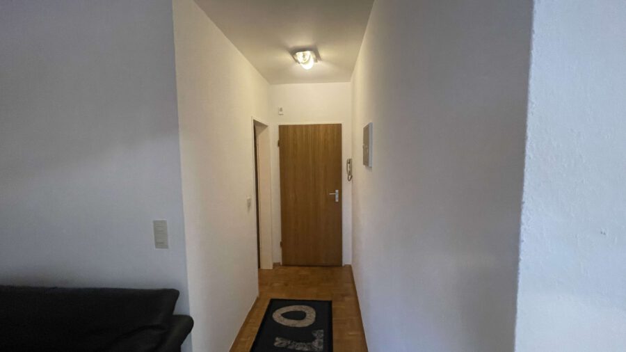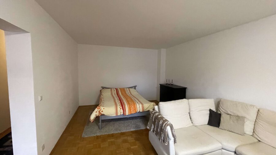 Der Flur sowie das Wohnzimmer sind mit hochwertigem Parkettboden ausgestattet. Das helle Wohnzimmer verfügt über einen Balkon. Das Badezimmer präsentiert sich in einem gepflegten Zustand.